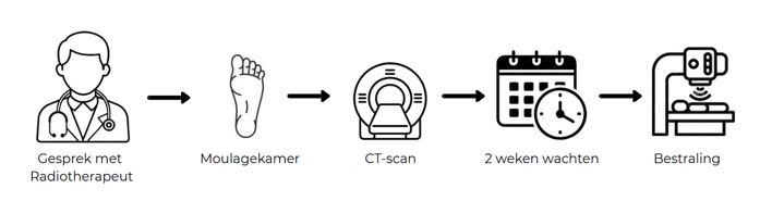 Als deze 2 voorbereidingen klaar zijn, maken wij een bestralingsplan. Het maken van het bestralingsplan kost tijd. De bestralingen beginnen ongeveer twee weken na de eerste voorbereidingen.