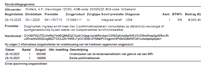 Hieronder ziet u een voorbeeldfactuur. Deze factuur wordt in heel Nederland op dezelfde manier gemaakt. Het Catharina Ziekenhuis gebruikt dit voorbeeld ook.